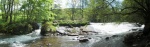 Between the municipalities of Murat and Albepierre-Bredons the biological and morphological continuity of river Alagnon was interrupted by a weir for the water supply of a mill. The intake structure was 2,7 m high and 26,5 m wide. A fish pass with limited funcionality hindered the fish migration. On the left bank there is a campsite and meadows on the right.