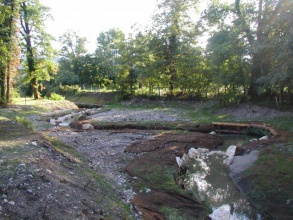 • 2004 (involved length 350 m): rock sills and groynes to promote diversification of habitats; construction of vegetated log cribwalls, associated with geotextile to ensure bank stabilization (the restoration of a natural lateral dynamics was not part of project goals); creation of a narrower and meandering river bed;