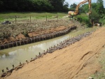 The latest success for this project is the removal of Shipley tilting gate. This Environment Agency owned and maintained structure on the Knepp estate on the Western arm of the Adur was preventing fish passage and impounding the river upstream. In partnership with the Ouse and Adur Rivers Trust (OART) the South Downs Fisheries and Biodiversity team led a project to remove the gate and stabilise the clay banks with brushwood terracing. This not only removed a significant barrier to fish passage but it has also helped restore natural river processes which will be beneficial to wider biodiversity as whole. The Arun and Adur operations field team with specialist help from the Ouse operations field team were the main contractors. Using their experience of the Knepp restoration project just downstream they carried out a very professional job and were praised by the designers, OART and everyone else involved with the project. The Arun and Adur Asset Performance Team helped with the engineering aspect as well as contractor management and finance.