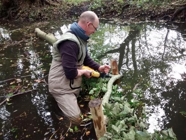 Timber screws were used to connect the woody-debris to the vertical stakes. The screws are discrete but ensure the structure is solid.