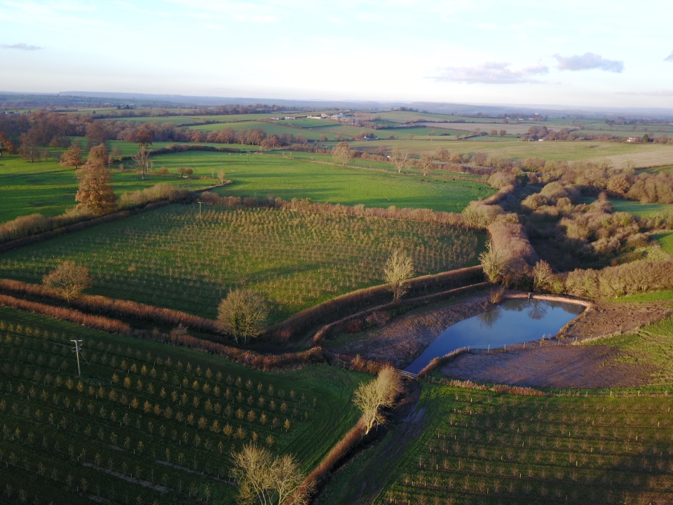 One method that Hills to Levels is constructing leaky ponds and adapting existing ponds to improve flodowater storage capacity. This leaky pond in South Somerset has both a passive and controlled outlet.