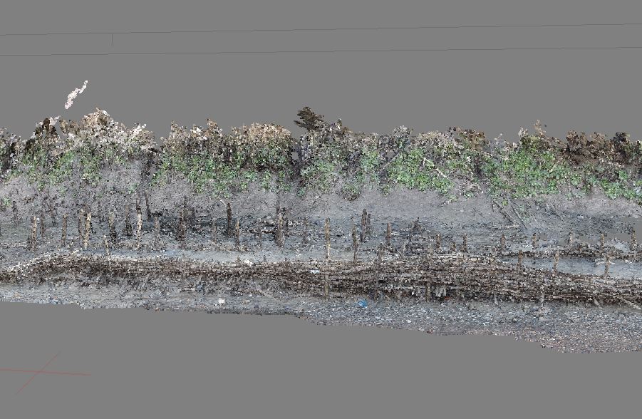 3D point cloud of a partially restored section of the bank made using photogrammetry. A GPS enabled Nikon CoolPix AWS110 was used with AgiSoft software to create the cloud